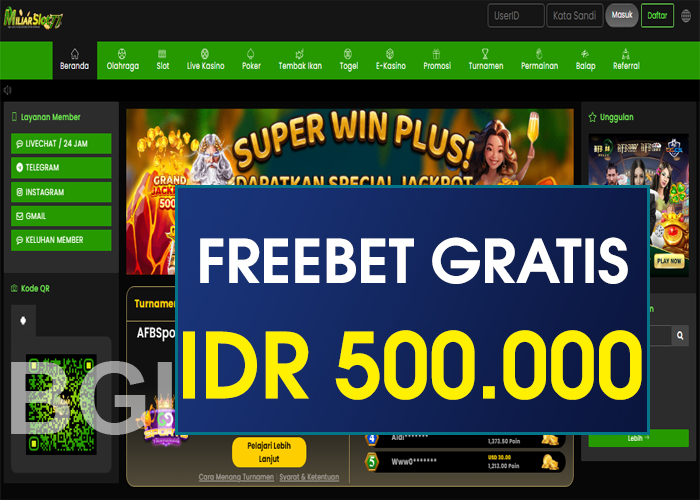 Dapatkan freebet gratis tanpa deposit senilai Rp 500.000,- dari MILIARSLOT77